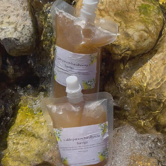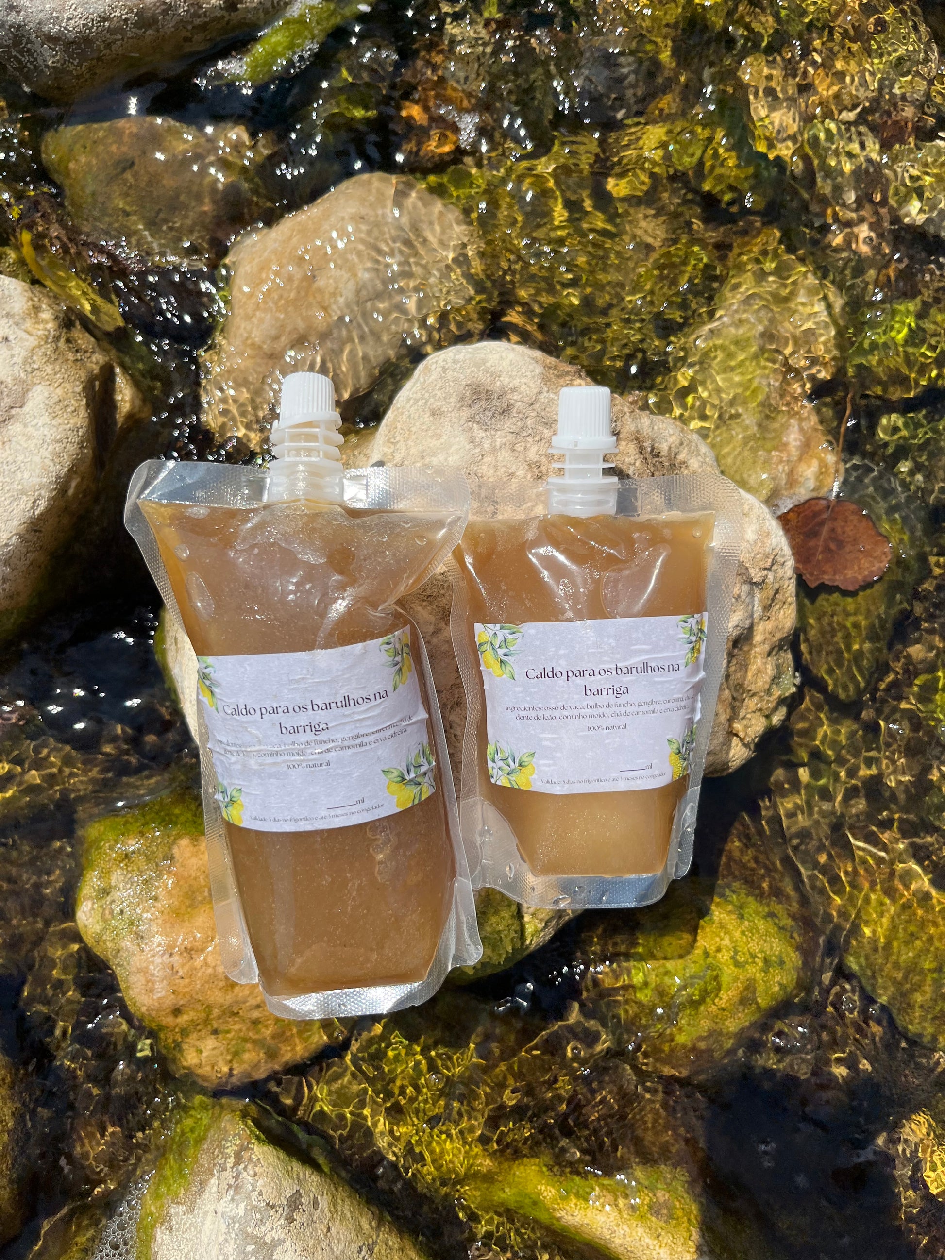 O Caldo Barulhos na Barriga é formulado para ajudar a aliviar desconfortos gastrointestinais. Com ingredientes como osso de vaca, bulbo de funcho, gengibre e ervas calmantes, promove uma digestão saudável e reduz inflamações, contribuindo para o bem-estar do seu cão.